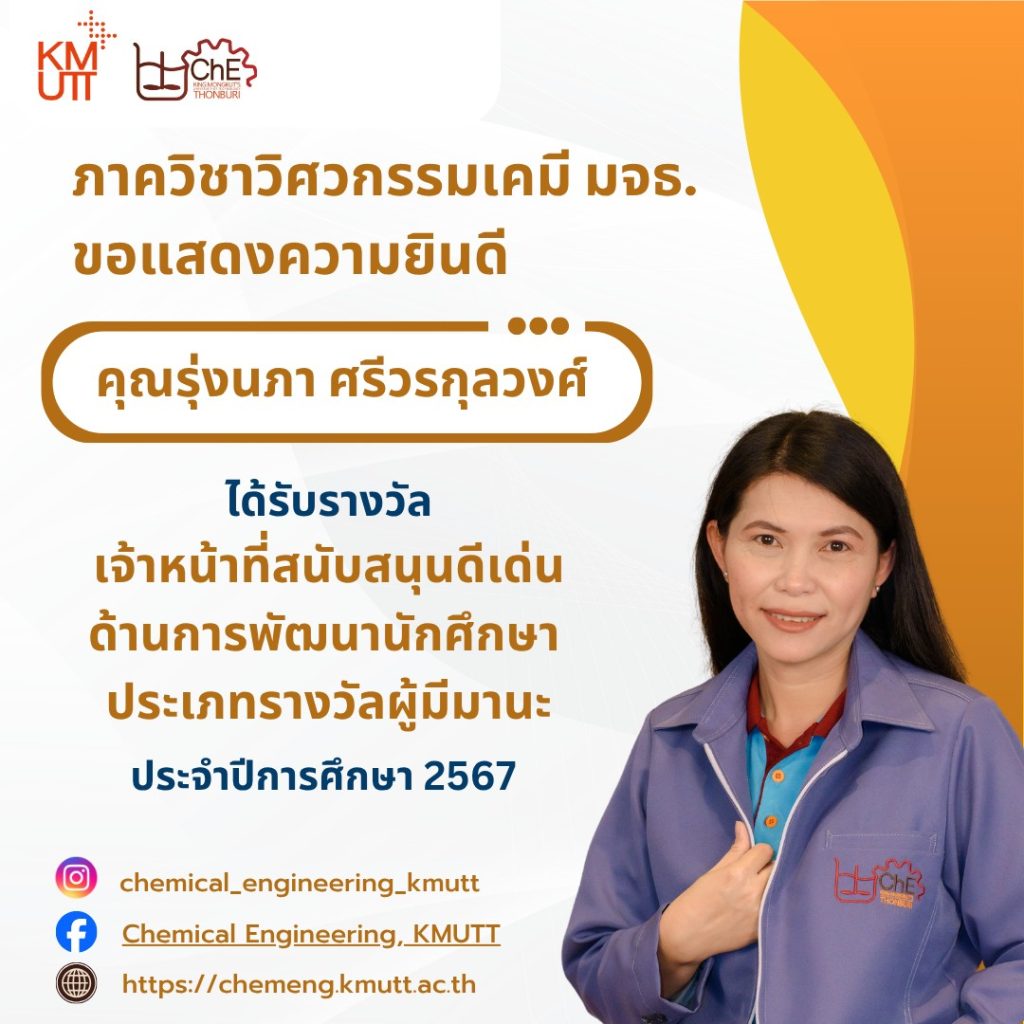 ได้รับรางวัลเจ้าหน้าที่สนับสนุนดีเด่น ด้านการพัฒนานักศึกษา ประเภทรางวัลผู้มีมานะ