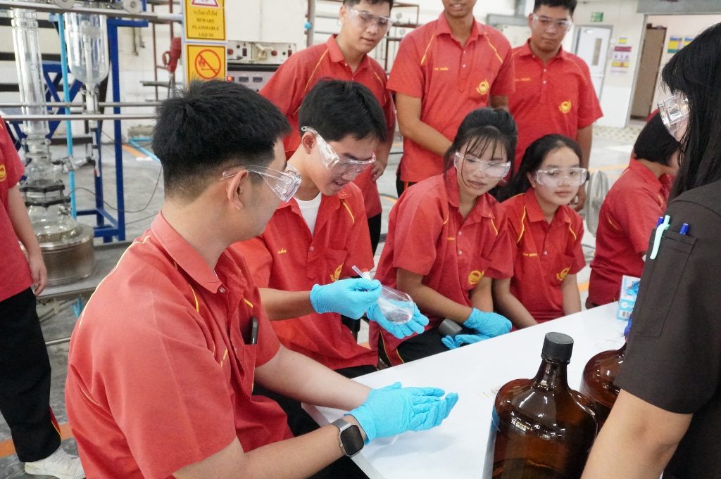 On Friday, 1 August 2025, the Department of Chemical Engineering, Faculty of Engineering, KMUTT, welcomed a group of 48 teachers and students from Klaeng “Wittayasathaworn” School who visited the department and participated in the activity “Exploring Chem Eng KMUTT” under the ChE KMUTT–Education Alliance project.