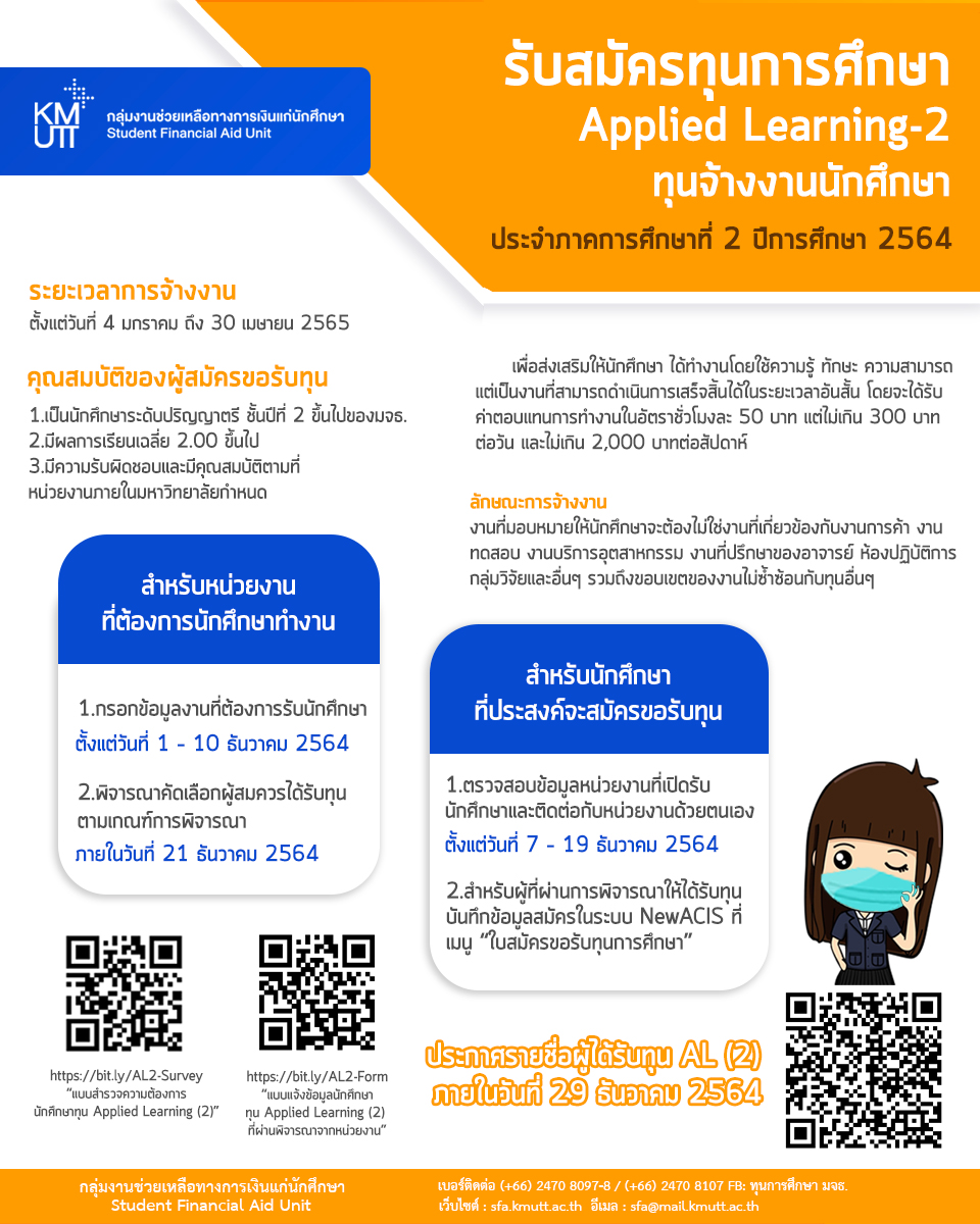 รายละเอียดเพิ่มเติม https://sfa.kmutt.ac.th/al2-1-2565/