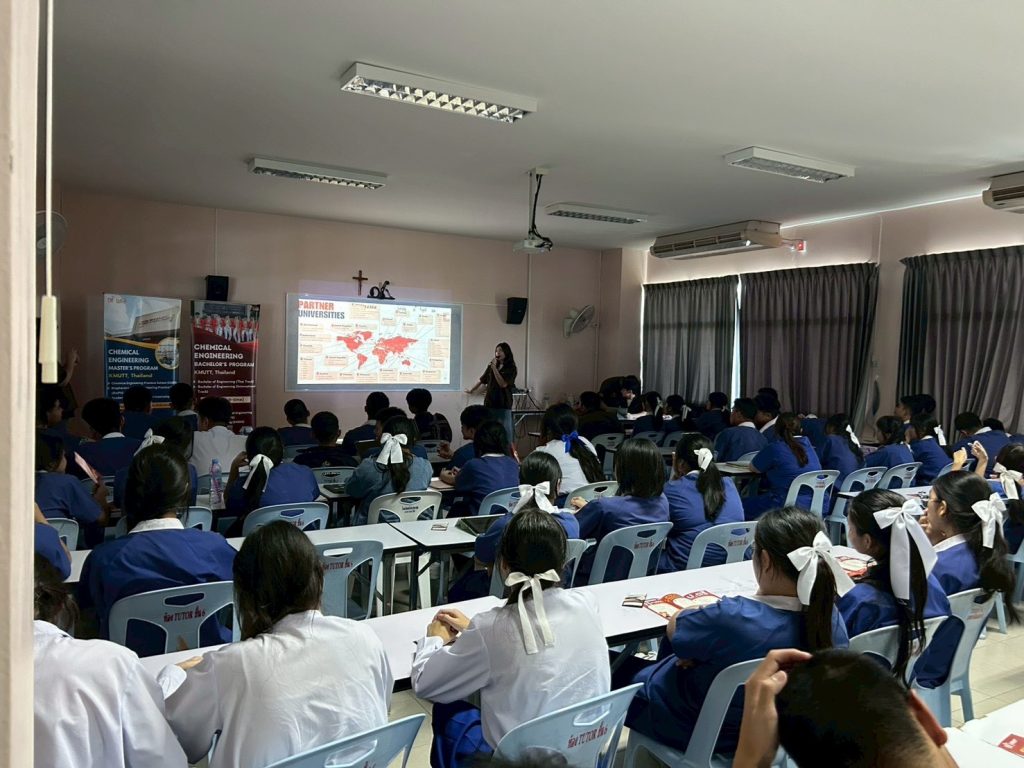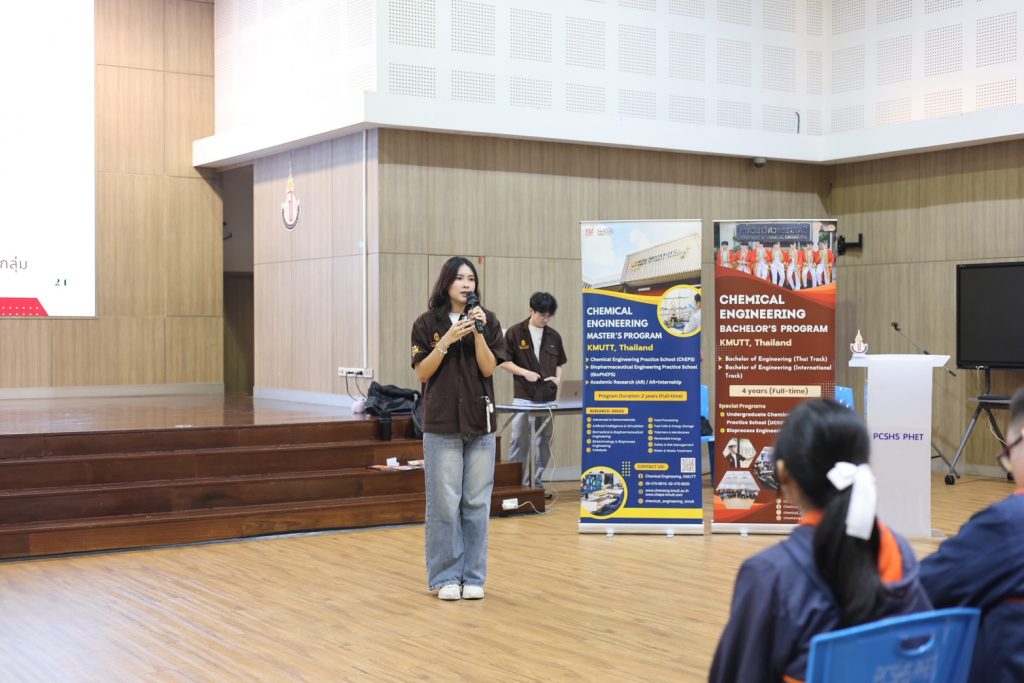 ในช่วงวันที่ 10–11 พฤศจิกายน 2568 ที่ผ่านมา นักศึกษาภาควิชาวิศวกรรมเคมี คณะวิศวกรรมศาสตร์ มหาวิทยาลัยเทคโนโลยีพระจอมเกล้าธนบุรี ได้เข้าร่วมโครงการ “ชวนน้องมาเรียนวิศวะ” เพื่อนำเสนอข้อมูลการเรียนต่อในสายวิศวกรรมศาสตร์ และลงลึกในสาขาวิศวกรรมเคมี พร้อมถ่ายทอดประสบการณ์จริงจากพี่ ๆ แก่นักเรียนมัธยมศึกษาตอนปลายโรงเรียนบางปะกอกวิทยาคม โรงเรียนวิทยาศาสตร์จุฬาภรณราชวิทยาลัย เพชรบุรี และโรงเรียนหัวหินวิทยาลัย