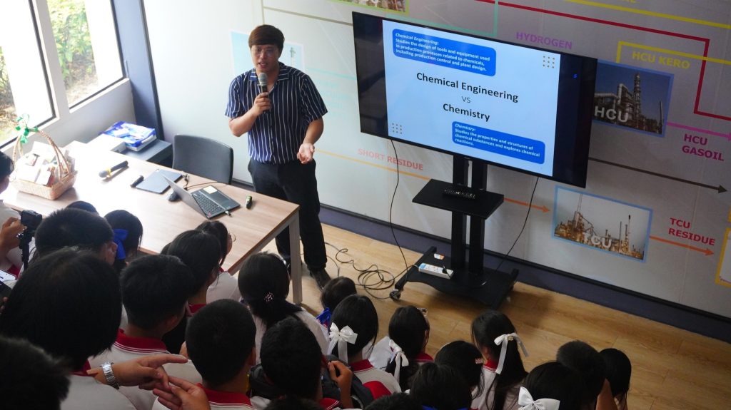 พร้อมทั้งพาชมโรงประลอง และเปิดโอกาสให้นักเรียนได้สอบถามข้อสงสัยเกี่ยวกับวิศวกรรมเคมีอย่างเป็นกันเอง